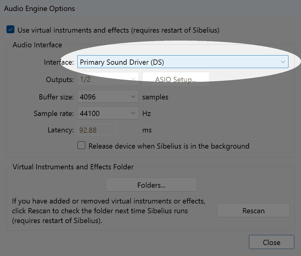 • The workaround is to try a different audio interface from the list.